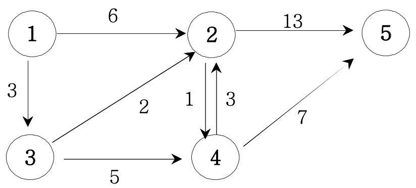 0 5 3 6 13 // 1번 정점에서 2번정점으로 5, 1에서 3번 정점으로 3, 1에서 4번 정점으로 6......
