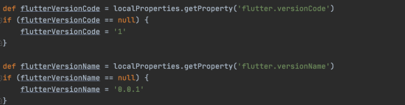 flutterVersionCode와 flutterVersionName 을 확인합니다.