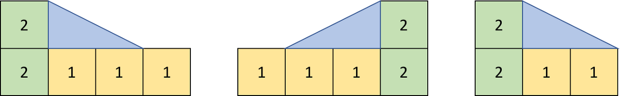 L = 2인 경우에 경사로를 놓을 수 있는 경우를 그림으로 나타내면 아래와 같다.