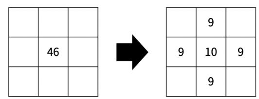 - 확산되는 양은 Ar,c/5이고 소수점은 버린다.