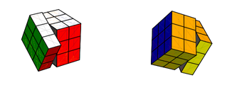 위의 그림은 루빅스 큐브를 푼 그림이다. 왼쪽 면은 시계방향으로 조금 돌려져 있는 상태이다.
