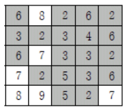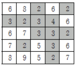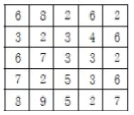 어떤 지역의 높이 정보는 행과 열의 크기가 각각 N인 2차원 배열 형태로 주어지며 배열의 각 원소는 해당 지점의 높이를 표시하는 자연수이다. 예를 들어, 다음은 N=5인 지역의 높이 정보이다.