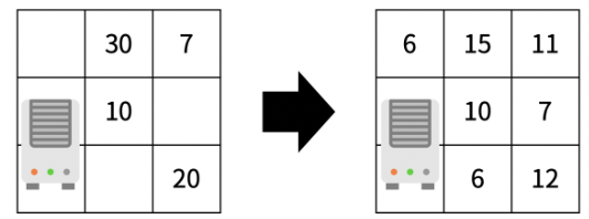 - 인접한 방향에 공기청정기가 있거나, 칸이 없으면 그 방향으로는 확산이 일어나지 않는다.